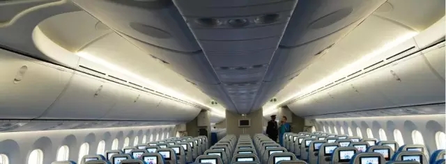 波音787-9型夢想客機(jī)較其它機(jī)型擁有更大的舷窗,更充足的行李空間。